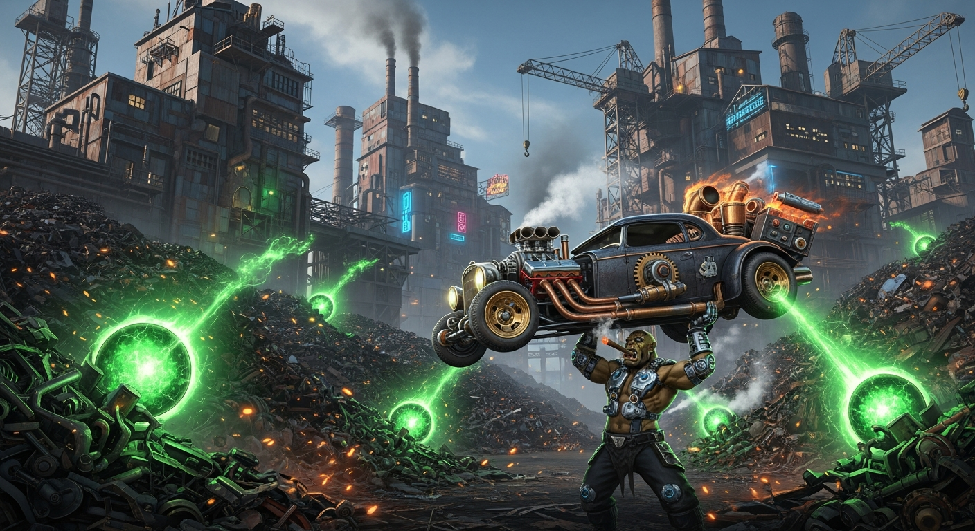In a realm where cyborg knights wield plasma swords and wizards charge electricity, you must steal something precious. But every heist has a price. Some prices are paid in chrome and circuitry.